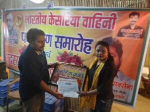 भारतीय केसरिया वाहिनी का पद ग्रहण एवं सदस्य सम्मान समारोह का आयोजन किया गया इस समारोह में राष्ट्रीय अध्यक्ष जी माननीय मनोज कृष्णा श्रीवास्तव जी एवं युवा मोर्चा के राष्ट्रीय अध्यक्ष रवि कांत सक्सेना जी द्वारा पत्रकार प्रिया सोनी को किया गया सम्मान इस आयोजन में भारतीय केसरिया वाहिनी के राष्ट्रीय अध्यक्ष माननीय मनोज कृष्ण श्रीवास्तव जी राष्ट्रीय महासचिव माननीय अजीत श्रीवास्तव राष्ट्रीय संगठन मंत्री अजय बाजपेई राष्ट्रीय अध्यक्ष युवा मोर्चा के रविकांत सक्सेना जी के कुशल नेतृत्व तथा युवा मोर्चा द्वारा संयुक्त रुप से सफल संचालन किया गया कई लोगों को पद मनोनीत किया गया युवा मोर्चा से प्रिया सोनी जी को प्रदेश मीडिया प्रभारी पद से मनोनीत किया गया एवं महिला मोर्चा की कानपुर जिला अध्यक्ष नीरजा अवस्थी जी जिला महासचिव सीता वर्मा जी को मनोनीत किया गया युवा मोर्चा में राहुल श्री जी को राष्ट्रीय उपाध्यक्ष रोहित पांडे एवं शशांक शशांक स्वरूप सिंह जी को राष्ट्रीय सचिव एवं सुशील दिक्षित प्रदेश सचिव लल्लन पांडे जी प्रांत अध्य एवं सुमित तिवारी को कानपुर मंडल अध्यक्ष के पद से मनोनीत किया गया भारतीय वाहिनी के राष्ट्रीय अध्यक्ष एवं सभी पदाधिकारी ने संकल्प लेते हुए कहां है कि हम अपने देश को हिंदू राष्ट्र घोषित जल्द ही करवाएंगे राष्ट्रीय अध्यक्ष जी माननीय मनोज कृष्ण श्रीवास्तव जी ने अपने शब्दों को भी रखा प्रिया सोनी की रिपोर्ट