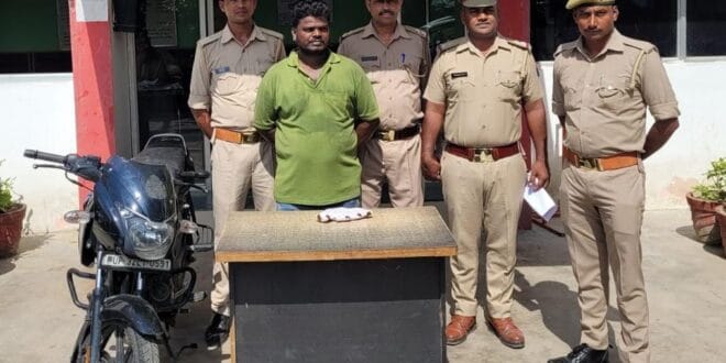 राजधानी लखनऊ में इन दिनों चोरों के हौसले बुलंद हैं चोर लगातार चोरी-डकैती की घटनाओं को अंजाम देकर पुलिस को खुलेआम चुनौती देने में लगे हुए हैं ऐसा ही मामला मोहनलालगंज कोतवाली से आया है जहां पर कोतवाली के सामने चाय की दुकान चलाने वाले युवक की बाइक चोरों ने पार कर दी वहीं कोतवाली के सामने से बाइक चोरी होने की सूचना मिलने पर पुलिस महकमे में हड़कंप मच गया हालांकि पुलिस ने घटना के 24 घंटे के अंदर ही बाइक समेत चोर को गिरफ्तार कर लिया है आरोपी के पास से एक अवैध तमंचा दो जिंदा कारतूस भी बरामद हुए हैं जानकारी के मुताबिक मोहनलालगंज कस्बा निवासी गोलू विश्वकर्मा पुत्र रामचंद्र विश्वकर्मा घर के बाहर टी- स्टाल चलाते है जो कि मोहनलालगंज कोतवाली की ठीक सामने है प्रतिदिन की भांति रात्रि मे वह दुकान बंद करने के साथ ही अपनी मोटरसाइकिल पल्सर यूपी 32 एलटी 0591 खड़ी कर घर चला गया था वही जब सुबह आकर देखा तो मोटरसाइकिल गायब थी आसपास तलाशने पर भी जब गाड़ी ना मिली तो युवक ने कोतवाली में शिकायत दर्ज कराई कोतवाली के ठीक सामने से बाइक चोरी होने की सूचना पर पुलिस महकमे में हड़कंप मच गया आनन फानन पुलिस ने सीसीटीवी कैमरे खंगालने शुरू करने के साथ ही चोर की तलाश में जुट हालाकी सक्रिय पुलिस टीम ने 24 घंटे के अंदर ही मुखबिर की सूचना पर आरोपी सोनू रावत पुत्र छोटेलाल निवासी डेहवा को चोरी की गई मोटरसाइकिल समेत गिरफ्तार कर लिया पुलिस टीम ने जब आरोपी युवक की तलाशी ली तो उसके पास से एक अवैध तमंचा दो जिंदा कारतूस भी बरामद हुए पुलिस आरोपी को लेकर कोतवाली आयी जहां पर नियमानुसार कार्रवाई करते हुए उसे जेल भेज दिया गया गिरफ्तार करने वाली टीम में शामिल उपनिरीक्षक विकास कुमार यादव हेड कांस्टेबल मुन्नीलाल कांस्टेबल विपिन कुमार मौर्या शामिल रहे।