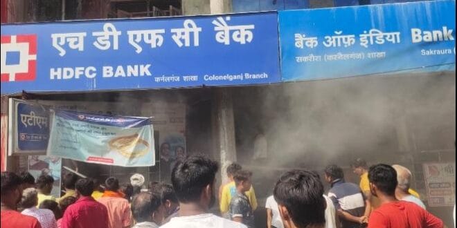 गोण्डा। स्थानीय तहसील मुख्यालय के कस्बा कर्नलगंज स्थित सकरौरा चौराहे पर संचालित एचडीएफसी बैंक में गुरुवार को अचानक आग लग जाने से बैंक कर्मियों में अफरा तफरी मच गई और देखते ही देखते वहां भारी भीड़ जमा हो गई। घटना की सूचना पर पहुंचे फायर बिग्रेड कर्मियों ने पुलिस कर्मियों तथा मौके पर मौजूद लोगों की मदद से काफी मशक्कत के बाद आग पर काबू पाया। प्राप्त जानकारी के मुताबिक गुरुवार की सुबह करीब नौ बजे के करीब बैंक खुला ही था कि एकाएक बैंक में धुंआ उठा और लोग बाहर भागने लगे, जहाँ आग लगने की सूचना से अफरा तफरी का माहौल उत्पन्न हो गया। इसी बीच तिरंगा यात्रा भी उसी मार्ग से निकली थी लेकिन उसमे कोई व्यवधान नहीं हुआ। आग की चपेट में आकर बैंक के बगल लगी एटीएम मशीन समेत बैंक का फर्नीचर व तमाम कागजात जलकर स्वाहा हो गए। इस आग में लाखों का रुपये का नुकसान बताया जा रहा है। वहीं शार्ट सर्किट से आग लगना बताया जा रहा है। फ़िलहाल आग की सूचना मिलने पर फ़ायर ब्रिगेड की गाड़ी मौक़े पर पहुँच गई और पुलिस कर्मियों तथा मौके पर मौजूद लोगों की मदद से किसी तरह आग पर काबू पाया गया। हालांकि आग लगने के सही कारणों का पता जाँच के बाद ही चल सकेगा।