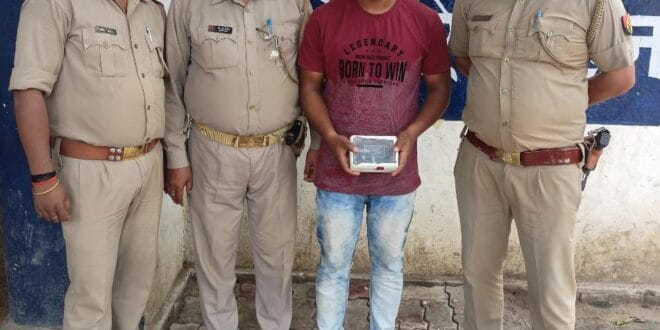 सरोजनीनगर कोतवाली प्रभारी संतोष आर्या ने बताया कि थाना क्षेत्र में एक दिन पूर्व दर्ज हुए चोरी के मुकदमे में एक शातिर को मुखबिर की सुचना पर बुधवार को थाना क्षेत्र के रेलवे अंडरपास के पास से गिरफ्तार किया गया है | शातिर के पास से पुलिस को चोरी की गई एक घड़ी, एक टार्च, एक इयरफोन, एक मोबाइल चार्जर, दो चाँदी के सिक्के बरामद हुआ है | पुलिस पूछताछ में शातिर ने कबूल किया है कि यह सामान मैंने मंगलवार रात सेण्ट