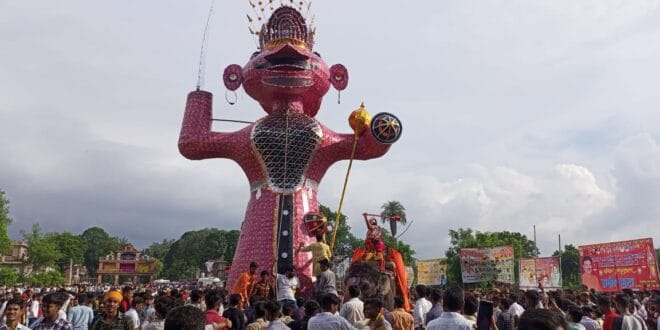 नगर के दक्षिण में अवस्थित धनुताल के मैदान में बुधवार को दशहरा मेला का आयोजन परंपरागत रूप से किया गया। मैदान के पूर्वी छोर पर पचास फीट ऊंची पक्की लंका दृष्टव्य थी जिसके सबसे ऊपरी झरोखे में जनकनंदिनी सीता विराजमान थीं। वहीं सामने रावण और मेघनाद के पुतले गाड़ियों पर कसे युद्घ के लिए तैयार खड़े थे। मैदान के पश्चिमी छोर पर लंका विजय हनुमान मंदिर पर राम का सैन्य शिविर दर्शाया गया था, जबकि मैदान के दक्षिणी तरफ धनुताल के तट पर नंदीग्राम एक मचान के रूप में दर्शाया गया था जहां भरत और शत्रुघ्न विराजमान थे। मैदान में भीड़ जुटती रही और युद्घ के नगाड़े बजते रहे। सायंकाल युद्घ प्रारंभ होता है और सबसे पहले मेघनाद का पुतला युद्घ के लिए प्रस्तुत होता है। हाथी पर सवार लक्ष्मण और हनुमान उससे युद्घ करने आते हैं। दोनों ओर से वाणों की बर्षा और हनुमान की गदा के प्रहार दर्शकों को रोमांचित कर रहे थे। तकरीबन एक घंटे तक चले इस युद्घ में मेघनाद की अमोघ शक्ति से लक्ष्मण मूर्छित हो जाते हैं और युद्घ भेरियां थोड़ी देर के लिये बंद हो जाती हैं। हनुमान संजीवनी बूटी लेने जाते हैं और भरत के वाण प्रहार से आहत हो गिर पड़ते हैं तब भरत उन्हें वाण से लंका भेजते हैं। इसके बाद एक बार फिर मेघनाद-लक्ष्मण युद्घ शुरू होता है और अंतत: मेघनाद धराशाई हो जाता है और उसके पुतले को आग लगा दी जाती है। पालकी में बैठी सुलोचना दर्शकों पर टूटी चूड़ियां फेंक कर अपने पति की मृत्यु पर आक्रोश प्रकट करती है।