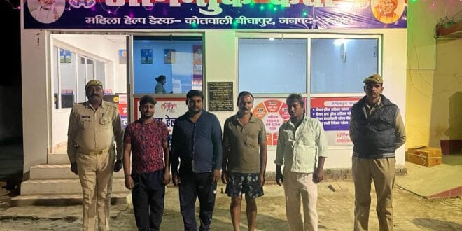 पुरवा उन्नाव मामला जनपद के थाना बीघापुर से सम्बन्धित है जहां पुलिस ने जुवाखेल रहे चार जवाड़ियों को गिरफ्तार किया है