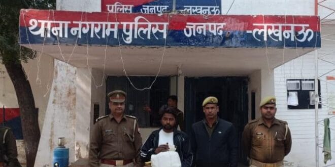 नगराम थाना पुलिस ने बृहस्पतिवार को इंदिरा नहर के पास से एक गांजा तस्कर को 2 किलो गांजे के साथ दबोच लिया थाने में लाकर उससे पूछताछ के बाद पुलिस ने उसका चालान कर दिया नगराम थाना प्रभारी हेमन्त कुमार राघव ने बताया कि बृहस्पतिवार की देर शाम एस एस आई अवधेश यादव व एसआई अमित बंसल हेड कां० राकेश मिश्रा व श्रवण कुमार पुलिस टीम के साथ क्षेत्र में वाहन चेकिंग कर रहे थे सूचना मिली कि एक तस्कर इंदिरा नहर पटरी से सलेमपुर अचाका रेगुलेटर की तरफ गांजा लेकर पैदल जा रहा है रेगुलेटर पर एक व्यक्ति आता दिखा शक होने पर पुलिस ने उसे रुकने का इशारा किया तो वह खेत की ओर तेजी से भागने लगा पुलिस ने घेराबंदी कर थोड़ी दूर पर ही उसे दबोच लिया तलाशी लेने पर झूले से भारी मात्रा में गांजा बरामद हुआ पूछताछ में उसने अपना नाम पता कुलदीप कुमार पुत्र राकेश पाल निवासी शुकलवा मजरा समेसी बताया थाना अध्यक्ष हेमंत राघव ने बताया कि पकड़े गए अभियुक्त पर थाना निगोहा में वर्ष 2021 में एनडीपीएस एक्ट का मामला दर्ज है शुक्रवार को अभियुक्त से पूछताछ के बाद एनडीपीएस एक्ट के तहत मामला दर्ज करते हुए उसका चालान कर दिया गया।