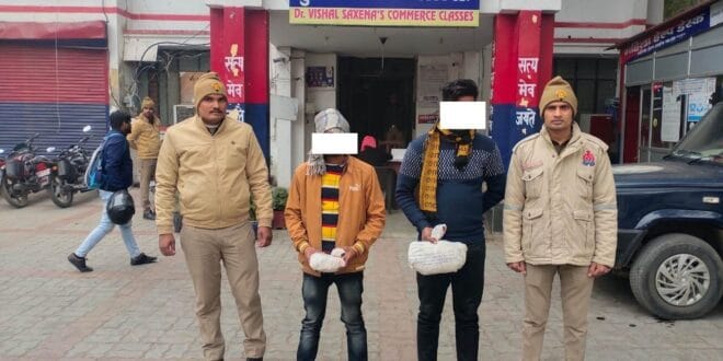 गुडम्बा कोतवाली प्रभारी आलोक राय ने बताया कि बीती रात स्थानीय पुलिस द्वारा थाना क्षेत्र के अवध मोड की तरफ से श्री कृष्ण पुरवा की तरफ चलाये जा रहे चेकिंग अभियान के दौरान दो व्यक्ति हाथ में थैला लिए आते दिखाई पड़े जो पुलिस की चेकिंग देख पीछे मुड़ भागने लगे संदेह होने पर पुलिस टीम ने घेराबंदी कर दोनों शातिरों को पकड़ लिया और पूछताछ के दौरान तलाशी ली तो शातिरों के पास से लगभग 12 सौ ग्राम अवैध गांजा बरामद हुआ जिसपर शातिरों को हिरासत में लेकर पूछताछ किया गया तो दोनों ने अपना परिचय सौरभ मौर्या पुत्र रामविलास मौर्या निवासी नेवादा पोस्ट गोयला थाना चिनहट लखनऊ व इन्द्रजीत सिंह पुत्र राम दयाल यादव निवासी सिसवारा पोस्ट घेरीदेवा जनपद बाराबंकी के रूप में दिया है। दोनों शातिरों के खिलाफ एनडीपीएस एक्ट की धाराओं में कार्यवाई कर जेल भेज दिया गया है।