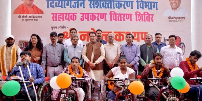 लखनऊ खबर दृष्टिकोण | दिव्यांगजन का सशक्तीकरण प्रधानमंत्री नरेन्द्र मोदी का ड्रीम प्रोजेक्ट है। प्रत्येक दिव्यांग सशक्त, स्वाभिमानी और समर्थ बने, इसके लिये केन्द्र और प्रदेश सरकार द्वारा विभिन्न योजनाएं संचालित की जा रही है। दिव्यांगजनों के भरण-पोषण हेतु दिव्यांग पेंशन की अनुदान राशि 300 रूपये से बढ़ाकर 1000 रूपये की गयी है। भविष्य में दिव्यांग भरण-पोषण की अनुदान राशि 1500 रूपये किये जाने का प्रस्ताव है। यह बातें प्रदेश के पिछड़ा वर्ग कल्याण विभाग एवं दिव्यांगजन सशक्तिकरण राज्यमंत्री नरेन्द्र कश्यप ने शनिवार को डॉ. शकुन्तला मिश्रा पुनर्वास विश्वविद्यालय में दिव्यांगजनों के लिये आयोजित उपकरण वितरण कार्यक्रम में कही।मंत्री नरेन्द्र कश्यप ने डा0 शकुन्तला मिश्रा राष्ट्रीय पुनर्वास विश्विद्यालय लखनऊ में 296 दिव्यांगजनों को 462 सहायक उपकरण वितरित किये। सहायक उपकरणों में 70 मोटरराइज्ड ट्राई साइकिल, 27 ट्राइसाइकिल,10 बैसाखी, 23 व्हील चेयर, 56 स्मार्टकेन, 56 ब्रेल किट, 200 श्रवण यंत्र तथा 20 एम.आर. किट का वितरण किया गया। उन्होने कॉक्लियर इम्प्लान्ट सर्जरी कराने वाले श्रवण बाधित बच्चों से मुलाकात की। जनपद लखनऊ में वित्तीय वर्ष 2022-23 में 06 बच्चों का तथा अब तक कुल 37 बच्चों को कॉक्लियर इम्प्लान्ट लगाया जा चुका है। डा0 शकुन्तला मिश्रा राष्ट्रीय पुनर्वास विश्विद्यालय में कॉक्लियर इम्प्लान्ट सर्जरी हेतु चिन्हित श्रवणबाधित एवं कॉक्लियर इम्प्लान्ट सर्जरी के बच्चों के अभिभावकों तथा इम्पैनल अस्पताल एवं संस्थाओं के डॉक्टर टीम के साथ एक कार्यशाला का आयोजन हुआ। मंत्री द्वारा कॉक्लियर इम्प्लान्ट सर्जरी करने वाले डॉक्टरों को प्रतीक चिन्ह देकर सम्मानित भी किया गया।इस अवसर पर मंत्री नरेन्द्र कश्यप ने कहा कि दिव्यांगजनों की यात्रा सुगम बनाने एवं गंतव्य स्थान तक पहुंचाने के लिये मुख्यमंत्री द्वारा वर्ष 2022-23 के बजट में 32.50 करोड़ रूपये दिव्यांगजों के मोटर राइज्ड ट्राई साइकिल के लिये आंवटित किये गये है। जिससे लगभग 8000 दिव्यांगजों की यात्रा को सुगम बनाया जा सकेगा। उन्होने कहा कि दिव्यांगजों को शादी अनुदान के तहत 35000 रूपये दिये जाते है। इसमें शादी रजिस्ट्रेशन कराने में दिव्यांगजनों को हो रही परेशानी को देखते हुये अनुदान के लिये शादी रजिस्ट्रेशन की शर्त को हटा दिया गया है। उन्होने दिव्यांगजनों से कहा कि डा0 शकुन्तला मिश्रा राष्ट्रीय पुनर्वास विश्वविद्यालय में उच्च शिक्षा में अपनी योग्यता के अनुसार प्रवेश ले। चित्रकूट स्थित जगतगुरु रामभद्राचार्य दिव्यांग विश्वविद्यालय का भी संचालन विभाग द्वारा प्रारंभ कर दिया जाएगा जिसके माध्यम से दिव्यांगजनो को सशक्त बनाकर समाज में मुख्यधारा से जोड़ा जा स