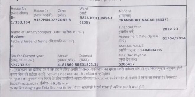 लाख रूपये कर दिया गया था इसके बावजूद भी कर को जमा नहीं कराया गया और नगर निगम राजस्व कर्मी