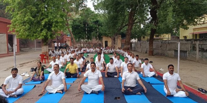 लखनऊ खबर दृष्टिकोण | लखनऊ के जीआरपी पुलिस ने शुक्रवार को पुलिस उपाधीक्षक प्रथम संजीव कुमार सिन्हा एवं पुलिस उपाधीक्षक रेलवे द्वितीय हृषिकेश यादव के नेतृत्व में पुलिस कर्मियों को शारीरिक व मानसिक रूप से स्वस्थ रखने के लिये जीआरपी पुलिस लाइन ग्राउंड में योग शिविर का आयोजन किया गया, जिसमे अनुभाग लखनऊ कार्यालय, पुलिस लाइन व चारबाग़ थाने के कर्मचारी व अधिकारीगणों द्वारा योगाभ्यास किया गया । योगा विशेषज्ञ डॉ अवधेश कुमार शर्मा, समग्रा योग साधना एवं अनुसंधान संस्थान गोमतीनगर लखनऊ द्वारा इस कार्यक्रम को सम्पन्न कराया गया, जिसमें पुलिस अधिकारी व पुलिस कर्मचारियों द्वारा योग का भरपूर लाभ उठाये तथा पुलिसकर्मियों को शारीरिक व मानसिक रूप से फिट रहने के लिए योग के विभिन्न आसन, प्राणायाम, शीर्ष आसन, ताड़ आसन इत्यादि का अभ्यास कराया गया तथा बताया कि योग द्वारा न सिर्फ बीमारियों का उपचार किया जाता है, परंतु इसे अपनाकर कई शारीरिक और मानसिक कमियों को भी दूर किया जा सकता है।