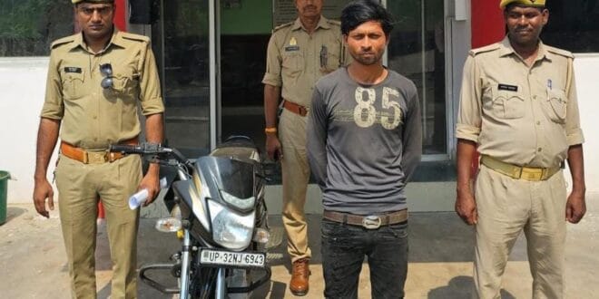 मोहनलालगंज। कस्बे में एक ढाबे के बाहर से आठ दिन पहले चोरी हुयी बाइक समेत शातिर चोर को पुलिस ने शनिवार को गिरफ्तार कर घटना का खुलासा किया।पुलिस ने शातिर चोर को न्यायालय में पेश किया,जहां से उसे जेल भेज दिया गया है।