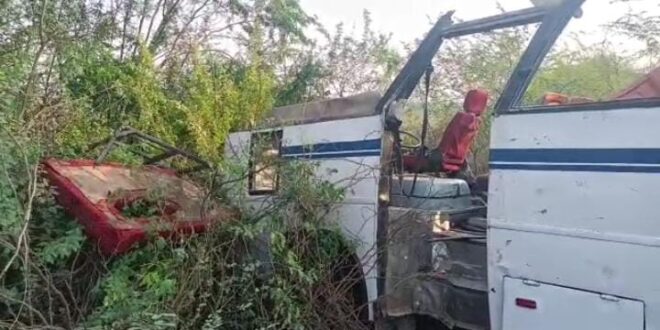 जालौन- जनपद जालौन के थाना रेंडर के ग्राम मढेला से पाल समाज की थाना रामपुरा ग्राम ऊमरी जनपद जालौन बारात गई हुई थी बारात बापिस आते समय पाहुज नदी के 200 मीटर आगे एक अज्ञात वाहन के द्वारा बस में जोरदार टक्कर मारी गई टक्कर इतनी जबरदस्त थी कि बस का ऊपरी हिस्सा बिल्कुल अलग हो गया जिसमें लगभग 40 लोग बैठे हुए थे जिसमें लगभग 16 लोग गंभीर रूप से घायल हो गये जिनको प्राथमिक उपचार के लिए सीएससी माधौगढ़ ले जाया गया जहां पर सीएससी प्रभारी के द्वारा पांच लोगों को मृत घोषित किया गया