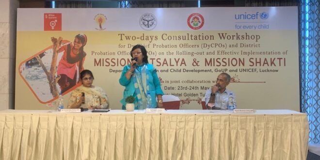 मिशन वात्सल्य एवं मिशन शक्ति के प्रभावी क्रियान्वयन हेतु डिप्टी चीफ प्रोबेशन अधिकारियों एवं ज़िला प्रोबेशन अधिकारियों की दो दिवसीय कार्यशाला बुधवार को सम्पन्न हुई। कार्यशाला का आयोजन लखनऊ में महिला एवं बाल कल्याण विभाग उत्तर प्रदेश एवं यूनिसेफ के संयुक्त तत्वावधान में किया गया।