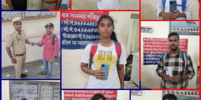 खबर दृष्टिकोण लखनऊ | चारबाग जीआरपी पुलिस टीम द्वारा सफर के दौरान यात्रियों के गुम हुए मोबाईल फोन पर शिकायतकर्ताओं के प्रार्थना पत्र पर सर्विलांस के सहयोग से गुम हुए मोबाईल फोन बरामद कर मोबाईल स्वामियों के सुपुर्द किया गया है |