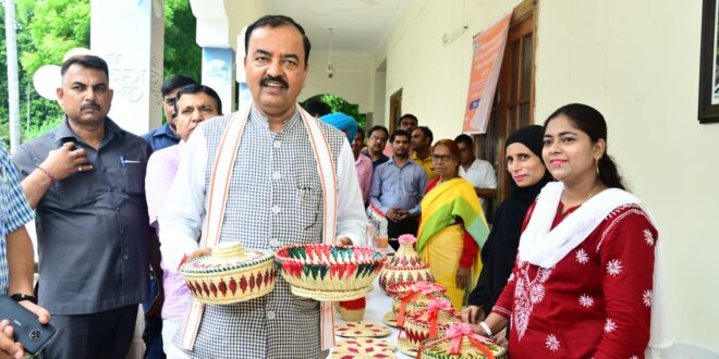 उप मुख्यमंत्री केशव प्रसाद मौर्य ने स्वयं सहायता समूह की महिलाओं द्वारा निर्मित उत्पादों की प्रदर्शनी का अवलोकन किया ।तथा विभिन्न उत्पादों के बारे में महिलाओं से जानकारी प्राप्त की।