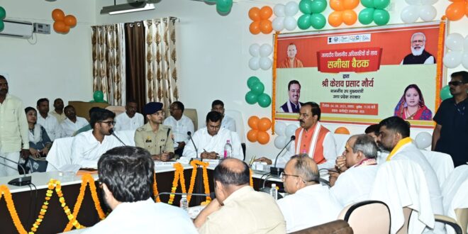 उत्तर प्रदेश के उप मुख्यमंत्री केशव प्रसाद मौर्य ने शुक्रवार को कलेक्ट्रेट सभागार मऊ में प्रधानमंत्री आवास योजना -ग्रामीण वित्तीय वर्ष 2023-24 के तीन लाभार्थियों क्रमशः प्रिया, मिंता, प्रियंका को स्वीकृति पत्र तथा प्रधानमंत्री आवास योजना -ग्रामीण वित्तीय वर्ष 2022-23 के 2 लाभार्थियों क्रमशः लालमति, मीना को आवास की प्रतीकात्मक चाभी प्रदान किया। उन्होंने मुख्यमंत्री आवास योजना के 2022-23 के तीन लाभार्थियों क्रमशः सुनीता देवी, श्रीमती नीलम देवी, राजेंद्र राजभर को भी प्रतीकात्मक चाभी प्रदान कर पक्के आवास की सौगात दी। बाबा स्वयं सहायता समूह विकासखंड परदहां की पूनम एवं गुंजन को डेढ़ लाख का चेक वितरण भी उपमुख्यमंत्री द्वारा किया गया।