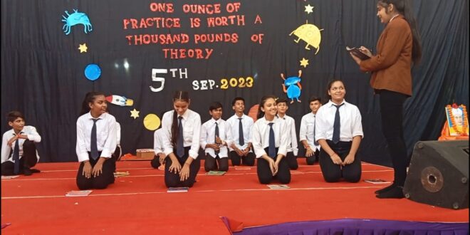पचोर (खबर दृष्टिकोण)। प्रोफेसर संतोष मित्तल हायर सेकेंडरी स्कूल पचोर में शिक्षक दिवस के अवसर पर शिक्षक सम्मान समारोह का आयोजन किया गया। कार्यक्रम का शुभारंभ विद्यालय प्रबंधक, प्राचार्य एवं सभी शिक्षक/ शिक्षिकाओं द्वारा सरस्वती पूजन व दीप प्रज्वलन के साथ हुआ। कार्यक्रम में गुरु वंदना के पश्चात, शिक्षक सम्मान का क्रम शुरू हुआ जिसमें एक-एक कर सभी शिक्षक/ शिक्षिकाओं को मंच पर आमंत्रित कर कक्षा 11वीं एवं 12वीं के विद्यार्थियों द्वारा तिलक लगाकर व उपहार भेंट कर उनका सम्मान किया गया। इसी क्रम में शिक्षक /शिक्षिकाओं के अलग-अलग समूह से कुछ रोचक और मनोरंजक गतिविधियां करवाई गई। जिसमें पासिंग द बॉल, मैजिक कैंडल को बुझाना, फोल्ड द क्लॉथ आदि प्रमुख रही। कार्यक्रम के बीच-बीच में अलग-अलग कक्षाओं के विद्यार्थियों द्वारा विभिन्न सांस्कृतिक प्रस्तुतियां दी गई। जिसमें एकल गीत, समूह गीत, एकल नृत्य, समूह नृत्य, नाटक आदि प्रमुख रहे। इसके पश्चात विद्यालय संचालक गोपाल जी गोयल, एवं सविता गोयल द्वारा सभी शिक्षक/ शिक्षिकाओं का मंच पर सम्मान किया गया वह विद्यालय की ओर से उपहार प्रदान किया गया। कार्यक्रम में विद्यालय प्राचार्य डॉ. भारती जौहरी द्वारा बच्चों को आशीर्वचन देते हुए उन्हें शिक्षकों का महत्व एवं विद्यार्थियों की शिक्षकों के प्रति वास्तविक जिम्मेदारी को समझाया गया। इसी क्रम में विद्यालय मुख्य प्रबंधक श्री संजय सोनी ने विभिन्न उदाहरणों के माध्यम से बताया कि गुरु की महिमा कितनी है, भारत अगर चांद पर पहुंच पाया तो इसका श्रेय भी किसी शिक्षक को ही जाता है। शिक्षक की गोद में ही प्रलय एवं निर्माण होता है। अतः सभी शिक्षकों को हमेशा नमन करते हुए उनका सम्मान करना चाहिए। कार्यक्रम का संचालन कक्षा 12वीं एवं 11वीं के विद्यार्थियों द्वारा किया गया। कार्यक्रम के अंत में उपस्थित सभी लोगों का आभार विद्यालय के कोर्डिनेटर गोवर्धन सिंह राजपूत सर ने माना। इस अवसर पर विद्यालय प्रबंधक मंडल से गोपाल गोयल, सत्यनारायण गुप्ता, विनोद राठी, सविता गोयल, विद्यालय मुख्य प्रबंधक संजय सोनी, प्राचार्य डॉ. भारती जौहरी, सभी शिक्षक शिक्षिकाएं एवं विद्यार्थी उपस्थित रहे।