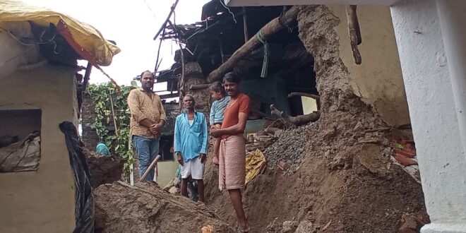 पचोर म.प्र (खबर दृष्टिकोण)। क्षेत्र में बीते दो दिनों से हो रही लगातार बारिश के कारण जनपद पंचायत सारंगपुर क्षेत्र की ग्राम पंचायत मगराना में ग्रामीणों के मकान की दीवार हो रही बारिश के कारण शनिवार को भर भरा कर गिर गई जिससे घर में रखा सामान दब गया मगराना गांव के देवीलाल पिता जगन्नाथ मालवीय के मकान की दीवार भारी बारिश के कारण शनिवार की रात में जा गिरी जिसके मलबे में घर का सामान दब गया जबकि परिवार के लोग घर में सो रहे थे जिसके कारण देवीलाल मालवीय को काफी नुकसान पहुंचा वहीं रोड सिंह मालवीय के मकान की भी शनिवार को दीवार ढहने के मामले सामने आए हैं जो हिस्सा ढहा वहां परिवार के लोग थोड़ी दूरी पर सो रहे थे दीवार का हिस्सा दूसरी ओर गिरने से गनीमत रही की कोई जनहानि नहीं हुई मौके पर सरपंच प्रतिनिधि धर्मेंद्र गुर्जर पहुंचे एवं प्रशासन के अधिकारियों सहित इसकी सूचना गांव के हल्का पटवारी को दी जिसमें पटवारी के द्वारा हड़ताल पर चले जाने की बात कही परन्तु राजस्व अमला गांव में रविवार तक नहीं पहुंचा है जबकि शनिवार को मगराना गांव के मकान की दीवारें गिरी है तथा जिस व्यक्ति की मकान की दीवारें गिरी है वह अपने परिवार के साथ अपने भाई के मकान में रहने के लिए पहुंचा।