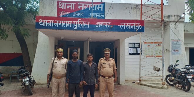 नगराम थाना क्षेत्र के अंतर्गत मितौली ग्राम पंचायत में पिछले माह किसान के बैल खोलकर गांव के बाहर बाग में काट डाले थे। जिसमें एक आरोपी पकड़ा गया था ।और तीन आरोपी फरार थे। नगराम थाने में किसान की तहरीर पर मुकदमा पंजीकृत किया गया था। आज नगराम पुलिस ने मुखबिर की सूचना पर चेकिंग अभियान लगाया ।जिसमें दो शातिर अपराधी पुलिस के हत्थे चढ़ गये । पहला अपराधी आदेश पुत्र हेमराज उम्र 22 वर्ष निवासी पस्तरा थाना गोसाईगंज का रहने वाला है दूसरा अभियुक्त प्रमोद पुत्र राममिलन उम्र 24 वर्ष निवासी पस्तरा का ही रहने वाला है ।नगराम पुलिस ने दोनों अभियुक्तों को गिरफ्तार कर सलाखों के पीछे भेजा। और शेष बचे अभियुक्त अब्दुल्ला पुत्र अज्ञात निवासी राजा बाजार थाना चौक जनपद लखनऊ की तलाश की जा रही है