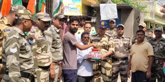 मोहनलालगंज।निगोहां गांव में शुक्रवार को सीआईएसएफ जवानो द्वारा मेरी माटी-मेरा देश कार्यक्रम का आयोजन किया गया।कार्यक्रम के तहत जवानो ने प्रधान अभय दीक्षित समेत स्कूली बच्चो व शिक्षको के साथ पूरे गांव में अमृत कलश लेकर भ्रमण किया।हाथो में तिरंगा झंडा थामें स्कूली बच्चो के साथ घर-घर जाकर अमृत कलश में मिट्टी संग्रह करने का कार्य किया।जवानो ने शहीद जवान अमरेन्द्र बहादुर सिंह के घर पहुंचकर उनके पिता जंग बहादुर सिहं से भी अमृत कलश में मिट्टी ली।इस मौके पर ग्रामीणो ने श्रद्वा के साथ अमृत कलश में एक-एक चुटकी मिट्टी डाली।इस मौके ग्रामीणो ने भारत माता की जय समेत शहीदो की याद में खूब जयकारे लगायें।जवानो व ग्रामीणो ने मुट्ठी भर मिट्टी लेकर पंचप्राण की शपथ भी ली।इस मौके पर पूर्व प्रधान दीपा दीक्षित,प्रधानाध्यापिका ममता वर्मा,अमित सिंह समेत काफी संख्या में जवान व स्कूली बच्चो समेत ग्रामीण मौजूद रहें।