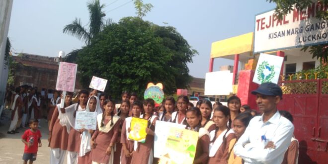 गोशाईगंज लखनऊ1अक्टूबर से 14 अक्टूबर तक सरकार द्वारा स्वच्छता जागरूकता कार्यक्रम कराए जाने हेतु आज विद्यालय तेजपाल मेमोरियल स्कूल गंगागंज लखनऊ में प्रातः 9बजे बच्चो द्वारा प्रभात फेरी निकाली गई जिसका सुभारभ प्रधानाचार्य आशाराम यादव ने किया साथ में बच्चों को नसे से मुक्त रहने का संदेश भी दिया निर्मल भारत अभियान कार्यक्रम भारत सरकार द्वारा चलाया जा रहा ग्रामीण क्षेत्र में लोगों के लिए माँग आधारित एवं जन केन्द्रित अभियान है, जिसमें लोगों की स्वच्छता सम्बन्धी आदतों को बेहतर बनाना, स्व सुविधाओं की माँग उत्पन्न करना और स्वच्छता सुविधाओं को उपलब्ध करना, जिससे ग्रामीणों के जीवन स्तर को बेहतर बनाया जा सके। । इसी को ध्यान में रखते हुए तेजपाल मेमोरियल स्कूल गंगागंज में बड़े ही हर्षोल्लास से छात्राओं के साथ प्रभात फेरी निकाल कर स्वच्छता का संदेश दिया इस अवसर पर प्रधानाचार्य सहित शिक्षक उपस्थित रहे।
