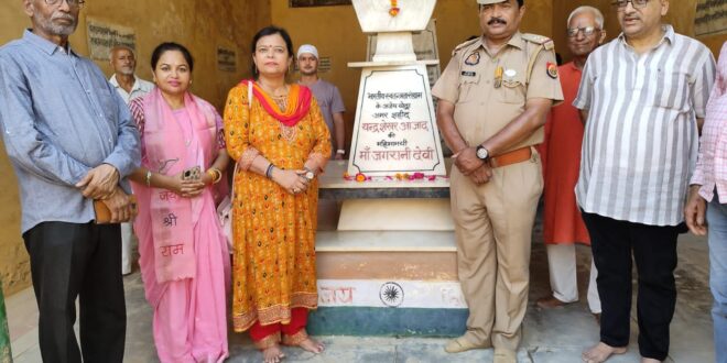 उन्नाव। बच्चों में राष्ट्र प्रेम की अलख जगाने के साथ शैक्षिक और ऐतिहासिक भ्रमण कराने के उद्देश्य से उन्नाव पुलिस कंट्रोल रूम में तैनात पुलिस दंपती अनूप मिश्रा अपूर्व (सब इंस्पेक्टर ) और उनकी पत्नी रीना पाण्डेय मिश्रा (सब इंस्पेक्टर ) द्वारा बाल चौपाल के सहयोग से अनूठी पहल करते हुए काकोरी (लखनऊ) से बदरका (उन्नाव ) तक तिरंगा कलश यात्रा का आयोजन किया गया । पुलिस दंपती द्वारा नवाबगंज में बच्चों का स्वागत किया गया फिर उनके साथ बच्चों का 10 सदस्यीय भ्रमण दल ग्राम – बदरका पहुंचा जहां स्वंत्रता संग्राम के महानायक “ अमर शहीद चन्द्रशेखर आज़ाद ” को याद करते हुए बच्चो ने स्मारक पर बनी आजाद जी की प्रतिमा पर माल्यार्पण करके श्रद्धांजलि अर्पित की और जन्मस्थली की पुण्य माटी को नमन किया। बच्चों ने उस घर को भी देखा जहां आजाद जी का जन्म हुआ और उनकी माता रहा करती थीं। आजाद की माता जी की प्रतिमा पर माल्यार्पण कर श्रद्धांजलि अर्पित की । बदरका में तिरंगा कलश यात्रा यात्रा का भव्य स्वागत अभिनंदन शहीद चंद्र शेखर आजाद स्मारक ट्रस्ट समिति के महामंत्री राजेश शुक्ला , अनुराग अवस्थी ( जिला उपाध्यक्ष भाजपा ) , शिव प्रकाश अवस्थी (पूर्व प्रधान बदरका ) राजन शुक्ला , देव कुमार शुक्ला जितेंद्र दीक्षित , शिवम आजाद , अतुल अवस्थी , अनूप त्रिवेदी , ओम प्रकाश अवस्थी , दीपक अवस्थी ,अचल अवस्थी , गुड्डन शुक्ला , शंभू शुक्ला , राजीव त्रिपाठी पत्रकार , कल्लू पहलवान जी एवं बदरका ग्राम की सम्मानित देवतुल्य जनता के द्वारा किया गया । यात्रा के संयोजक अनूप मिश्रा अपूर्व सीनियर ( सब इंस्पेक्टर) और उनकी पत्नी रीना पाण्डेय मिश्रा ( सब इंस्पेक्टर ) एवम उच्च प्राथमिक विद्यालय बंशी गढ़ी काकोरी ब्लॉक की प्रधान शिक्षिका प्रीति त्रिवेदी को शहीद चन्द्रशेखर स्मारक समित के महामंत्री राजेश शुक्ला दद्दा अनुराग अवस्थी जिला उपाध्यक्ष भाजपा द्वारा सम्मानित किया गया ।
