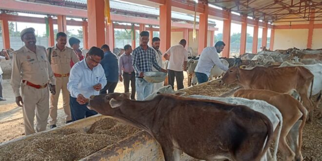 मोहनलालगंज।शारदीय नवरात्री की महानवमी पर्व पर सोमवार को उपजिलाधिकारी हनुमान प्रसाद मौर्य ने मोहनलालगंज नगर पंचायत के गौरा गांव में बने गोवंश आश्रय केन्द्र पहुंचकर चेयरमैन प्रतिनिधि अजय पांडे व ईओ मनीष राय की मौजूदगी में आश्रय केन्द्र में मौजूद गौवंशो को गुड़ व केला खिलाया।जिसके बाद एसडीएम ने आश्रय केन्द्र का निरीक्षण किया तो साफ-सफाई व्यवस्था अच्छी मिली ओर गौवंशो की चरही भूसे से भरी मिली एसडीएम को आश्रय केन्द्र में 337गौवंश आवासित मिले।उन्होने ईओ को गौवंशो को चारे में दिये जाने वाले भूसे में चार किलो हरा चारा व 500ग्राम दाना मिलाये जाने के निर्देश दिये।निरीक्षण के दौरान आश्रय केन्द्र में मौजूद कुछ गौवंशो को अस्वस्थ देख एसडीएम ने मौके से ही पशु चिकित्साधिकारी को फोन कर अस्वस्थ गौवंशो का तत्काल स्वास्थ परीक्षण कर इलाज कराये जाने के निर्देश दियें।एसडीएम को आश्रय केन्द्र में पेयजल,लाइट व शेड की व्यवस्था ठीक मिली।