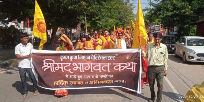 आलमबाग | आशियाना में राम रोटी परिवार ने काकोरी काण्ड के शहीदों की स्मृति में भव्य कलश यात्रा के साथ ही प्रारंभ हुआ आठ दिवसीय भव्य भागवत कथा महोत्सव में शुक्रवार सुबह भगवताचार्य रामानुज संप्रदायचार्य प्रेममूर्ति पूज्य संत स्वामी लक्ष्मणदासजी महाराज ने आशियाना में भव्य कलश यात्रा बैंड बाजे के साथ निकाली गई इस दौरान बड़ी संख्या में महिलाओं ने भी इस कलश यात्रा में सहभागिता की और हर तरफ जय श्री राधे की गूंज सुनाई पड़ी । कलश यात्रा सेक्टर के आशियाना के कम्यूनिटी ग्राउंड सेंटर से शुरू होकर आशियाना और एलडीए कॉलोनी होते हुए वापस कथा स्थल पर संपन्न हुई । कथा के अंत में राम रोटी परिवार द्वारा भक्तों को प्रसाद और भोजन भी करवाया गया । कथा में मुख्य रूप से पूर्व पार्षद कमलेश सिंह राम रोटी परिवार से आशीष तिवारी , अंशुमान दुबे , अर्जुन यादव , रोहित सैनी आदित्य सिंह राठौर, मनीष सिंह विकास शुक्ला , केशव प्रसाद उपाध्याय सहित अन्य लोग उपस्थित रहे ।