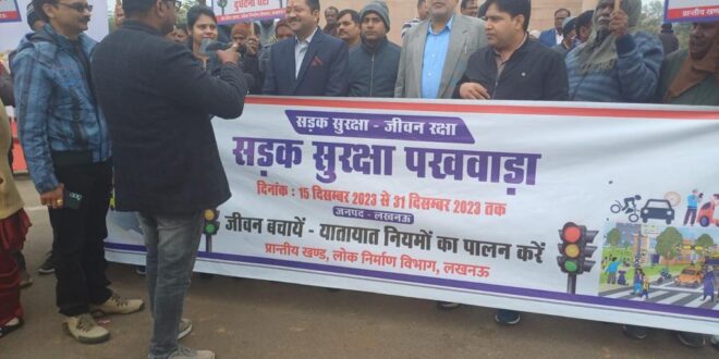 वर्मा ने बताया कि मुख्यमंत्री योगी आदित्यनाथ द्वारा प्रदेश में 15 दिसम्बर, 2023 से 30 दिसम्बर, 2023 तक “सड़क सुरक्षा पखवाड़ा” मनाये जाने के निर्देश दिए गए थे। निर्देशों के अनुपालन में प्रान्तीय खण्ड, लो०नि०वि०, लखनऊ द्वारा दिनांक 16.12.2023 को हजरतगंज चौराहे पर सडक सुरक्षा जागरूकता रैली निकालते हुए जनता को जागरूक किया गया। इसी प्रकार अटल चौराहा, विक्रमादित्य चौराहा, परिवर्तन चौक चौराहा, आई०टी० चौराहा, 1090 चौराहा, पॉलीटेक्निक चौराहा, तेलीबाग चौराहा, अवध चौराहा, चारबाग, कनवेन्शन सेण्टर, स्वास्थ्य भवन तिराहा आदि अनेक चौराहों पर सड़क सुरक्षा सम्बन्धी जागरूकता अभियान चलाया गया।