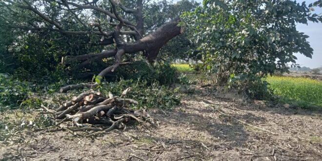 वन विभाग और पुलिस की सह पर हरे भरे आम के वृक्षों का खुले आम हो रहा कटान ।