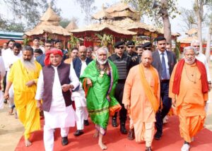 सनमुखानंद पुरी महराज ने नर्मदा नदी के तट पर कई वर्षों तक साधना की। उस साधना का प्रसाद सिद्धि के रूप में राजराजेश्वरी आश्रम व मंदिर के रूप में देखने को मिल रहा है। नैमिष क्षेत्र में नई कड़ी और नई मणि जुड़ने जा रही है । भगवान राम की मर्यादा का पालन करते हुए भारतवासियों ने जिस संयम का परिचय दिया वह अनोखा उदाहरण सीएम योगी ने कहा कि भारत की विरासत को नया स्वरूप प्रदान करने के लिए पीएम मोदी के नेतृत्व में देश में प्रारंभ हुए कार्य अद्भुत हैं। काशी में काशी विश्वनाथ को भव्य स्वरूप दिया गया है। महाकाल में महालोक का भव्य स्वरूप देखने को मिलेगा। केदारपुरी व बद्रीनाथ धाम में पुनरुद्धार का कार्य चल रहा है। अयोध्या में पांच सदी के बाद कोटि-कोटि सनातन धर्मावलंबियों की आस्था को संबल प्रदान हुआ है। भगवान राम की मर्यादा का पालन करते हुए न्यायालय के फैसले का पालन करते हुए भारतवासियों ने जिस संयम का परिचय दिया, वह दुनिया के लिए अनोखा उदाहरण है। दर्जनों पीढ़ियां, जिनके मन में अभिलाषा थी । कि हम भी रामलला को विराजमान होता देखेंगे । अधूरी आशा के साथ वे साकेत धाम में चले गए। हमारी पीढ़ी सौभाग्यशाली है । जिसने रामलला को अयोध्या धाम में फिर से विराजमान होते देखा है। हम भी धार्मिक आयोजनों के साथ समाज निर्माण, लोक कल्याण के लिए कार्य करें। सरकार व समाज मिलकर आगे बढ़ते हैं तो विकास कई गुना तेज हो जाता है। अयोध्या के व्यापारियों ने बताया-एक सप्ताह में व्यापार तीस गुना बढ़ गया