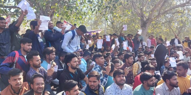 आलमबाग |यूपी पुलिस आरक्षी पद भर्ती परीक्षा में पेपर लीक होने का आरोप लगा शुक्रवार को राजधानी लखनऊ आलमबाग स्थित धरना स्थल ईको गार्डेन पर प्रदेश भर से भारी तादात में एकजुट हुए अभ्यर्थियों ने पुनः परीक्षा कराने की मांग को लेकर धरना प्रदर्शन शुरू कर दिया और सरकार विरोधी नारेबाजी करने लगे | अभ्यर्थियों की भारी तादात देख धरना स्थल पर कई थानों की पुलिस बल संग पीएसी प्लाटून एवं आरएएफ बल तैनात कर दिया गया पुलिस अधिकारी भी धरना स्थल पर मोर्चा संभाले रहे | प्रदर्शनकारी अभ्यर्थियों ने कई बार उग्र होकर विधान सभा कूच करने का प्रयास किया लेकिन पुलिस ने बैरकेडिंग कर धरना स्थल के मुख्य द्वार को बंद करा दिया | दोपहर करीब 2:00 बजे अपना दल पार्टी की नेता पल्ल्वी पटेल प्रदर्शन कारी अभ्यर्थियों के समर्थन में धरना स्थल पहुंची और अभ्यर्थियों के इस धरने को सम्बोधित किया उनकी मांगो को जायज बताते हुए मांग पूरी करने की बात कही | शाम करीब चार बजे पुलिस अधिकारियो ने आला स्तर पर वार्ता कर छः सदस्यीय प्रदर्शनकारी अभ्यर्थियों को उ प्र पुलिस एवं प्रोन्नति बोर्ड के अपर सचिव ( भर्ती ) को वार्ता के लिए भेजा गया | वार्ता में बात नहीं बनी और प्रोन्नति बोर्ड ने पुनः परीक्षा का फैसला देने के लिए तीन दिनों का समय माँगा | बोर्ड के इस वार्ता से असंतुष्ट वापस लौटी टीम ने मांग पूरी होने तक अपने प्रदर्शन को अनवरत जारी रखने का घोषणा किया है |