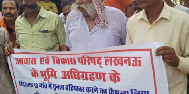 लखनऊ। आवास विकास परिषद के मानमाने रवैए से किसानों के अंदर नाराजगी भरी हुई है।वे लोग आपने हक की आवाज उठा रहे हैं तो इसमें आवास विकास या सरकार को कोई परेशानी नहीं होगी चाहिए। सठवारा निवासी गुड्डू सिंह और पूर्व प्रधान झगडू निराला ने कहा ने बताया कि गोसाईगंज इलाके के सठवारा, भटवारा, कबीरपुर, उदवत खेड़ा सिद्धपुरा भट्ट सहित 13 गांवों के लोगों को उनकी भूमि अधिग्रहण की नोटिस भेज दिया। यही बात किसानों को पसंद नहीं आई। उन सभी का कहना है कि 20 वर्षों से इस इलाके का सर्किट रेट निर्धारित नहीं किया गया है। आवास विकास परिषद उनकी जमीन को मनचाही कीमत पर हथियाना चाहता है इसी बात का विरोध किया जाएगा। किसानों ने कहा कि भारतीय लोकतंत्र में सभी को अपनी बात कहने का अधिकार दिया गया है इस लिए वे लोग चुप नहीं बैठेंगे। अपने अधिकार के लिए आगे बढ़कर आवाज उठाएं।वे लोग अपना अधिकार पाने के लिए ही आवास विकास परिषद की नीतियों का खुलकर विरोध भी करेंगे।उनका कहना है कि गोसाईगंज इलाके में ही जहां जहां आवास विकास परिषद ने भूमि अधिग्रहण किया वहां बढे हुए सर्किल रेट के हिसाब से किसानों को मुआवजा दिया गया फिर इन्हीं 13 गांवों के साथ ऐसा क्यों किया जा रहा है। किसानों का कहना है कि चुनावी आचार संहिता क्या सिर्फ किसानों के लिए ही बनी है? सरकारी कर्मचारियों को भी तो इसका पालन करना चाहिए
