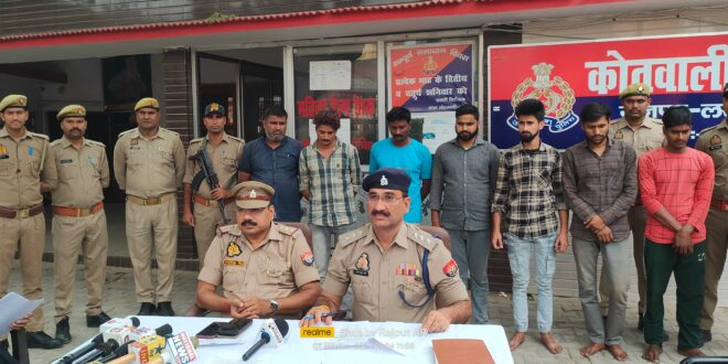 पुलिस उपाधीक्षक अरूण कुमार सिंह के निर्देशन में अपराध नियंत्रण को लेकर चलाये जा रहे अभियान के तहत प्रभारी निरीक्षक चन्द्रशेखर सिंह की निगरानी में उपनिरीक्षक बाबूराम, अरविन्द तिवारी, अवनेश कुमार आदि की टीम ने गश्त के दौरान टीपीआरएस चौराहे से तुरकहटा रोड पर श्यामू के आम के बाग में चोरी एवं लूट को अंजाम देने के की योजना बनाते हुए अब्दुल गफ्फार पुत्र अब्दुल हक निवासी जूही नेहरिया 83/62 थारा वारा देवी जनपद कानपुर नगर, सरफराज उर्फ कल्लू पुत्र अज्जन निवासी मोहल्ला नई बस्ती मोहम्मदी जिला खीरी, पवन पटेल पुत्र सुरेन्द्र कुमार निवासी मजीदपुर थाना पुवायां जिला शाहजहांपुर, प्रियांशू पुत्र वाशुदेव राम निवासी गौसगंज थाना कासिमपुर जिला हरदोई, सूरज कुमार भारती पुत्र वाशुदेव निवासी गौसगंज थाना कासिमपुर जिला हरदोई, रहीश पुत्र सिराजुददीन निवासी मल्लावा पठान टोला चुंगी नम्बर दो थािना कोतवाली सदर जिला हरदोई, दीपक वर्मा पुत्र उधौश्याम वर्मा निवासी ई16/11 यशोदा नगर थाना नौबस्ता जनपद कानपुर नगर हाल पता पाण्डेय जी शारदा स्कूल प्रताप होटल के पास यशेदा नगर जनपद कानपुर नगर को गिरफ्तार किया। पुलिस ने अभियुक्तो के विरूद्ध मु0अ0सं0 427/2024 अन्तर्गत धारा 399, 402 भादवि व 3/25ए एक्त बनाम अब्दुल गफ्फार आदि सात नफर अभियुक्तगणों के पंजीकृत कर वैधानिक कार्यवाही की जा रही है। पकड़े गये अभियुक्तो के पास से एक अदद देशी तमंचा 315 बोर मय एक कारतूस जिन्दा, 315 बोर मय एक कारतूस 315 बोर मिस, एक अदद छोटा चाकू व आलानकब, एक अदद बनी हुई चाबी, दो अदद पेचकस, दो अदद प्लास, एक जोडी गिल्प्स, एक टेप, चार जोड़ी मास्क, एक लकड़ी की मोहर, पांच सिम विभिन्न कम्पनियो के, सात सिम कटे हुए खो व एक चाबी का गुच्छा व दो अदद मोटर साइकिल पंजीकरण संख्या डीएल-14एसडब्लू-2535 होण्डा साईन व यूपी-32जेएम-4241 सुपर स्पलेन्डर बरामद किया है। पकड़े गये अभियुक्तो पर थाना मोहम्मदी सहित अन्य थाना में विभिन्न धाराओ में मुकदमे पंजीकृत है।