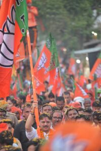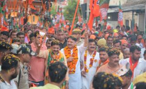 लखनऊ। मंगलवार को सरोजनीनगर विधानसभा क्षेत्र भगवामय नजर आ रहा था, बड़ी संख्या में पार्टी कार्यकर्ता और क्षेत्रवासी भाजपा का झंडा थामें, अपने विधायक के साथ पद यात्रा में चल रहे थे। विधायक द्वारा पांचवें दिन की सरोजनीनगर संकल्प पदयात्रा ग्राम पंचायत फतेहगंज से ग्राम पंचायत खुशहाल गंज के बीच आयोजित की गयी। मोहनलालगंज संसदीय क्षेत्र से भाजपा प्रत्याशी कौशल किशोर के पक्ष में जनसंपर्क कर रहे विधायक द्वारा फतेहगंज से शुरू हुई पदयात्रा का पूरे रास्ते में 10 से अधिक स्थानों पर कार्यकर्ताओं और क्षेत्रीय जनता द्वारा स्वागत किया गया इस दौरान भाजपा विधान परिषद सदस्य रामचंद्र प्रधान, वरिष्ठ भाजपा नेता राजेश सिंह चौहान, शिव शंकर सिंह शंकरी, रामा शंकर त्रिपाठी, पार्षद के एन सिंह, सरोजनीनगर ब्लॉक प्रमुख सुनील कुमार, पर्पेंद्र यादव, राजेंद्र सिंह राजू, मनीष द्विवेदी साथ रहे।