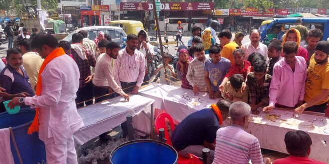 आलमबाग|आशियाना के पुरानी जेल रोड बंगला बाजार चौराहे पर जेष्ठ माह कृष्ण पक्ष के पहले बड़े मंगल के उपलक्ष्य पर विशाल भंडारे का आयोजन किया गया । भक्तिमय माहौल के बीच भंडारे की शुरुवात बंगला बाजार के भदरूख मुराउन खेड़ा निवासी समाजसेवी कमलेश चंद्र मौर्य ने अपने सैकड़ों सहयोगियों संग हनुमान जी के चित्र पर धूपदीप जला कर श्रीहनुमान चालीसा का पाठ किया । चालीसा पाठ के उपरांत विधि विधान से भगवान का भोग लगा सुबह 11 बजे से भंडारे में शुरू हुआ प्रसाद वितरण देर शाम लगभग 8 बजे तक चलता रहा । इस दौरान हजारों स्थानीय श्रद्धालुओं समेत राहगीरों व बच्चों ने भंडारे का प्रसाद ग्रहण कर “जय श्री राम – जय हनुमान” का उद्घोष करते रहे । इस मौके पर आयोजक मंडल के कमलेश चंद्र मौर्य, सुरेश चंद्र मौर्य, प्रेम चंद्र मौर्य, पंकज मौर्य, नीरज मौर्य, प्रदीप मौर्य समेत भाजपा के मंडल अध्यक्ष दक्षिण – तृतीय व पूर्व पार्षद विनोद मौर्य समेत सैकड़ों स्थानीय लोग भंडारे में बढ़चढ़ कर हिस्सा लेते हुए श्रमदान देते रहे ।