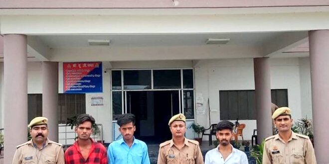 थाना कोतवाली देहात पुलिस टीम द्वारा वांछित पिंटू सिंह उर्फ अभय प्रताप पुत्र अमर सिंह निवासी गुजरा थाना कोतवाली देहात,क्षितिज मिश्रा पुत्र पंकज मिश्रा निवासी विजय लक्ष्मी नगर थाना कोतवाली नगर पारस पुत्र लल्ला निवासी मुंशीगंज थाना कोतवाली नगर को गिरफ्तार किया गया है। गिरफ्तार अभियुक्त पिंटू व क्षितिज उपरोक्त से एक-एक अवैध तमंचा व एक-एक कारतूस 315 व 12 बोर एवं अभियुक्त पारस से 1 कारतूस 12 बोर बरामद हुआ है। गिरफ्तार किए गए अभियुक्तों को जेल भेज दिया गया है।