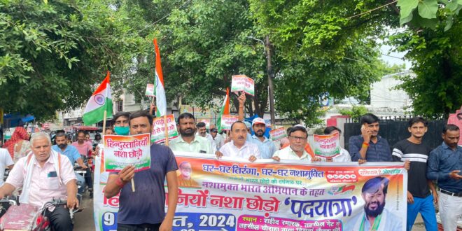 सिधौली/सीतापुर ।भाजपा सरकार में रहे पूर्व केंद्रीय राज्य मंत्री एवं मोहनलाल गंज लोकसभा के पूर्व सांसद कौशल किशोर के नशा मुक्त समाज आंदोलन अभियान कौशल का के बैनर तले विधानसभा सिधौली पूर्व सांसद कौशल किशोर के प्रतिनिधि अमित मोहन के नेतृत्व में सैकड़ो की संख्या में हिंदुस्तानियों नशा छोड़ो पदयात्रा निकल गई। यात्रा में नगर पंचायत सिधौली अध्यक्ष गंगा राम राजपूत समाजसेवी ललित मिश्रा एवं कई भाजपा के वरिष्ठ कार्यकर्ताओं ने बढ़ चढ़कर हिस्सा लिया। सांसद प्रतिनिधि अमित मोहन के अनुसार युवा वर्ग नशे से बिल्कुल दूर रह सके इसलिए अंग्रेजों भारत छोड़ो के तर्ज पर हिंदुस्तानियों नशा छोड़ो का कार्यक्रम किया गया। यह कार्यक्रम तकरीबन 4 वर्षों से होता चला आ रहा है। कार्यक्रम सिधौली के शहीद स्मारक से शुरू होकर तहसील चौराहा से पुनः शाहिद स्मारक पर संपन्न हुई। इस मौके पर नगर पंचायत अध्यक्ष सिधौली गंगा राम राजपूत, ललित मिश्रा रामनिवास विश्वकर्मा, आलोक त्रिपाठी,अतुल तिवारी,पुष्कर गुप्ता , प्रतीक सिंह,प्रेम मिश्रा, आशू तिवारी,जितेंद्र शुक्ला, सौरभ शुक्ला, हिमांशु रावत,राज तिवारी, इंद्र प्रताप सिंह, चंद्र प्रकाश सिंह,अमित शुक्ला के साथ सैकड़ो की संख्या में लोग मौजूद रहे