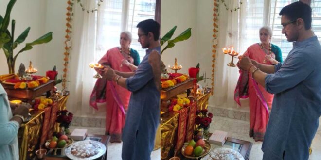 बॉलीवुड सुपरस्टार आमिर खान अपनी बहन निखत और उनके पति संतोष के साथ उनके घर पर गणेश चतुर्थी का जश्न मनाने के लिए शामिल हुए। इसी बीच आमिर की उनकी बहन और उनके पति संतोष हेगड़े के साथ मुंबई स्थित उनके घर पर त्योहार मनाते हुए कई तस्वीरें सामने आई हैं। गणेश पूजा समारोह की तस्वीरों में आमिर गणेश पूजा में लीन दिखाई दे रहे हैं। वह अपनी बहन और उसके परिवार के साथ पूजा करते भी नजर आ रहे हैं।