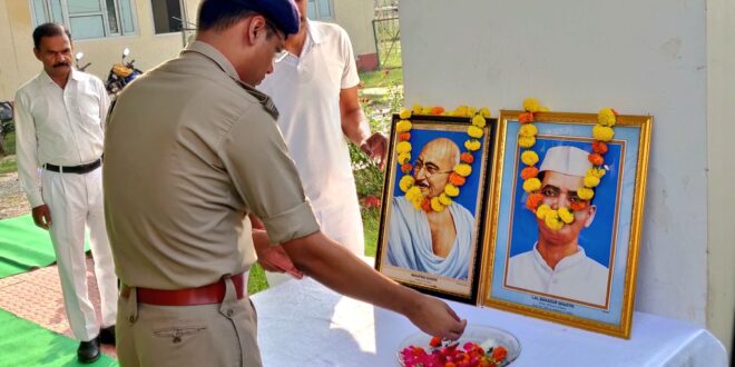 मोहनलालगंज।राष्ट्रपिता महात्मा गांधी व पूर्व प्रधानमंत्री लाल बहादुर शास्त्री की जयन्ती बुद्ववार को मोहनलालगंज के सभी सरकारी का धूमधाम से मनाई गयी।दक्षिणी जोन पुलिस कार्यालय पर डीसीपी केशव कुमार व एडीसीपी राजेश यादव मे दोनो महापुरूषो के चित्र पर माल्यार्पण किया,इस दौरान डीसीपी ने समस्त कर्मचारियो को स्वच्छता व सत्यनिष्ठा के साथ राष्ट्र की एकता व अखंडता की शपथ दिलाई गई।डीसीपी केशव कुमार ने राष्ट्रपिता महात्मा गाँधी जी एवं भारत के पूर्व प्रधानमंत्री लाल बहादुर शास्त्री जी के जीवन संघर्ष, सेवा सहित उनके जीवन मूल्यों पर प्रकाश डालने के साथ ही पुलिसकर्मियों को सादा जीवन उच्च विचार मिव्ययता,नैतिकता एवं भाई-चारा तथा सर्वधर्म सम्भाव जैसे आदर्श की भी प्रेरणा दी। मोहनलालगंज तहसील में उपजिलाधिकारी बृजेश कुमार वर्मा व तहसीलदार शंशाक नाथ उपाध्याय ने अधिकारी व कर्मचारियों संग दोनो ही महापुरूषो के चित्र पर माल्यार्पण कर जयन्ती मनाई तो वही मोहनलालगंज कोतवाली में एसीपी रजनीश वर्मा व इंस्पेक्टर आलोक राव ने पुलिसकर्मियों संग दोनो ही महापुरूषो के चित्र पर माल्यार्पण कर पुलिसकर्मियो को शपथ दिलाई।निगोहां थाने पर प्रभारी अनुज कुमार तिवारी व नगराम थाने पर प्रभारी विवेक कुमार चौधरी ने महापुरूषो के चित्र पर माल्यार्पण करते हुये पुलिसकर्मियो को शपथ दिलाई।मोहनलालगंज सीएचसी पर अधीक्षक डा०अशोक कुमार ने सभी चिकित्सको व कर्मचारियो की मौजूदगी में दोनो महापुरूषो के चित्र पर माल्यार्पण किया।नगर पंचायत कार्यालय पर चेयरमैन राजेश रावत व प्रतिनिधि अजय पांडे ने ईओ मनीष राय की मौजूदगी में दोनो महापुरूषो के चित्रो पर माल्यार्पण किया।
