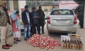 155 ली0 विदेशी शराब के साथ 03 तस्कर गिरफ्तार, कार जब्त
