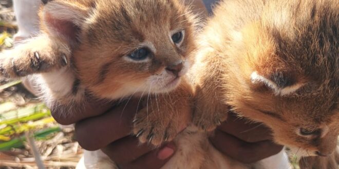 गोला गोकर्णनाथ खीरी।मोहम्मदी वनरेंज की बिलहरी वीट के ग्राम घरथानिया में गन्ना छील रहे किसानों को दुर्लभ प्रजाति की फिशिंग कैट के दो शावक मिले, जो दिखने में अजीब सा लगे।ग्रमीणों में इन शावकों को लेकर काफी सरगर्मियां बनी रही।