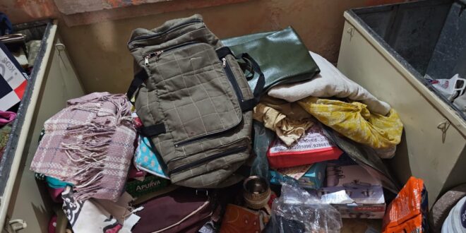 गुलावठी के गांव मोहाना में बिखरा पड़ा सामान।