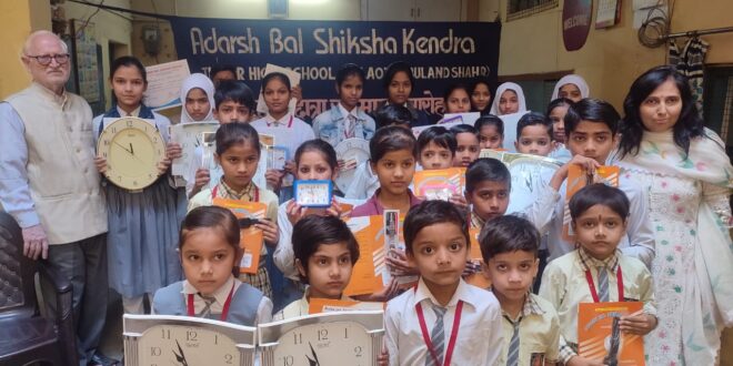 स्थानीय आदर्श बाल शिक्षा केंद्र जूनियर हाईस्कूल में शनिवार को मेधावी छात्र-छात्राओं को सम्मानित किया गया। विद्यालय के प्रबध्ंाक प्यारेलाल शर्मा एवं प्रधानाचार्या करूणा शर्मा ने मेधावियों को घंटे व घड़ी देकर सम्मानित किया।