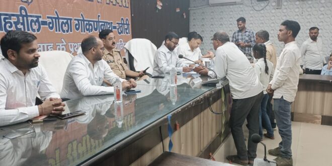 तहसील गोला में उपजिलाधिकारी विनोद कुमार गुप्ता की अध्यक्षता में संपूर्ण समाधान दिवस तहसील सभागार में संपन्न हुआ। समाधान दिवस में कुल 64 फरियादी शिकायत लेकर आए जिसमें से 13 शिकायतों का मौके पर ही निस्तारण कराया गया, शेष शिकायतें सम्बंधित अधिकारियों को सौंप दी गई।