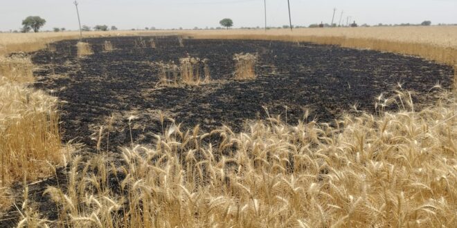 लेकिन तब तक दो किसानों की करीब दस बीघा गेहूं की फसल राख हो गई।