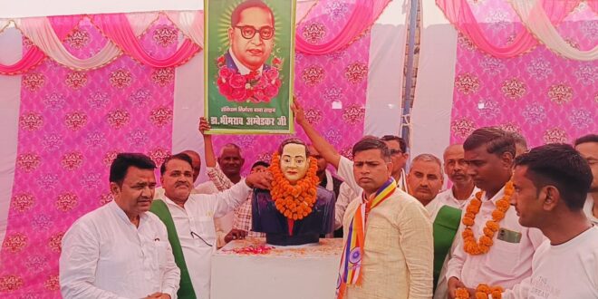 विश्वरत्न विश्व भूषण भारतरत्न महाविद्वान महानायक अर्थशास्त्री महान इतिहास कार भारत संविधान निर्माता तेजस्वी क्रांतिसूर्य महान युगपुरुष करोड़ों शोषितों वंचितों पीड़ितों दलितों और महिलाओं के मसीहा एवं मुक्तिदाता महा मानव भारत के संविधान निर्माता भारतरत्न बोधिसत्व परमपूज्य बाबा साहब डॉ भीमराव अम्बेडकर के 134 वें, जन्मोत्सव पर आज 14 अप्रैल पर उन्हें सभी ने सादर कोटि-कोटि नमन किया है। उधर बाबा साहब की प्रतिमा पर भाजपा जिला महामंत्री संजय चौधरी एवं रालोद नेता चौधरी नरेश प्रधान ने माला अर्पण कर उनके जीवन पर विस्तार पूर्वक प्रकाश डाला और संविधान निर्माता को बताया देश का महानायक उन्होंने हर वर्ग के लिए संविधान बनाया उसी से आज देश चलता है। इस दौरान अहमदगढ़ थाना पुलिस मुस्तैदी के साथ अंबेडकर सामुदायिक भवन पर तैनात रही।