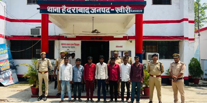 गोला गोकर्णनाथ खीरी। हैदराबाद थाना क्षेत्र के विभिन्न इलाकों से पुलिस टीम द्वारा सात वारंटी अभियुक्तों को गिरफ्तार कर न्यायालय में प्रस्तुत किया गया।