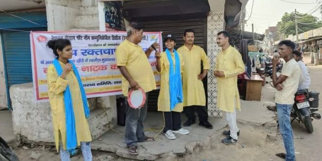 लखीमपुर खीरी। सामुदायिक स्वास्थ्य केंद्र मितौली के अंतर्गत उच्च रक्तचाप माह के दृष्टिगत तहसील मुख्यालय बस स्टॉप पर नुक्कड़ नाटक का आयोजन स्वास्थ्य विभाग द्वारा कराया गया। जिसमें उच्च रक्तचाप व तंबाकू उत्पाद से होने वाले दुष्प्रभावों को लेकर आम जनमानस को जागरूक किया गया। संपूर्ण कार्यक्रम सीएचसी अधीक्षक डॉ देवेंद्र सिंह के नेतृत्व में आयोजित हुआ। इस दौरान उन्होंने बताया कि 17 मई से उच्च रक्तचाप माह मनाया जा रहा है जिसके अंतर्गत जिले भर में जागरूकता कार्यक्रम सीएमओ डॉ संतोष गुप्ता के नेतृत्व में आयोजित किया जा रहे हैं। इसी के दृष्टिगत मितौली सीएचसी में भी इस माह में लगातार कैंप किए जा रहे हैं और यह नुक्कड़ नाटक भी इस कार्यक्रम का एक हिस्सा है, जिसके तहत आम जनमानस को उच्च रक्तचाप से होने वाले दुष्प्रभाव और तंबाकू उत्पादों के सेवन से होने वाले दुष्प्रभाव के प्रति जागरूक किया गया है। जिसमें एनसीडी टीम के साथ ही बीपीएम मोहम्मद तैय्यब सिद्दीकी सहित अन्य स्टाफ मौजूद रहा।