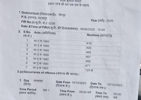 जौनपुर। बदलापुर थाने में उच्च न्यायालय के आदेश के क्रम में हल्का लेखपाल, अरेंजर शाहगंज, चकबंदी अधिकारी बदलापुर के चपरासी सहित सात लोगों के विरुद्ध धोखाधड़ी का मुकदमा दर्ज किया गया है, जिसकी विवेचना की जा रही है।