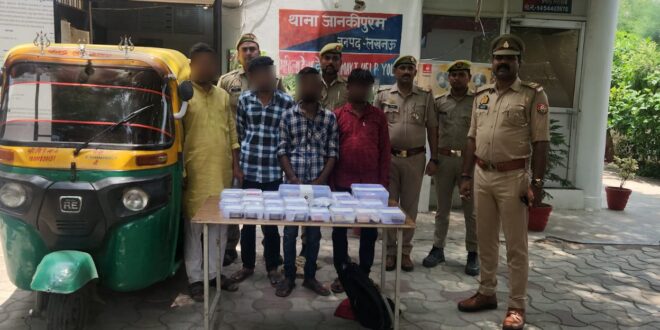 लखनऊ।जानकीपुरम थाना क्षेत्र के खरगापुर जागीर में बीते 18 जून को पेट्रोल पंप मालिक दुर्गेश कुमार मिश्रा के बंद मकान का ताला तोड़ चोरों के एक गिरोह बड़ी चोरी की घटना को अंजाम दिया था घटना के समय पेट्रोल पंप मालिक अपने परिवार के साथ बंगलौर गए थे ।इस बड़ी चोरी की घटना का खुलासा करते हुए उत्तरी जोन के पुलिस उपायुक्त विश्वजीत श्रीवास्तव ने बताया कि चोरी के खुलासे के लिए स्थानीय थाने की पुलिस टीम समेत क्राइम ब्रॉच, सर्विलांस,क्राइम टीम को लगाया गया मुखबिरी और सूचना तंत्र के आधार पर चोरों के गिरोह के मास्टर माइंड समेत तीन अन्य सदस्यों को गिरफ्तार किया गया है जिनके कब्जे से लाखों रुपयों के कीमती गहने हजारों नगदी और वादी मुकदमा के घर से चोरी हुआ एक कीपैड मोबाईल फोन बरामद हुआ है ।पूछताछ के दौरान इन लोगों ने अपनी पहचान राहुल गुप्ता पुत्र महेश गुप्ता निवासी पारा रोड थाना पारा मूलपता- जरहरा थाना इंदिरानगर लखनऊ,रामू रावत पुत्र स्व० कालीचरण निवासी एम०जी० कालोनी नागेश्वर मंदिर के पास सेक्टर सी अलीगंज,विमलेश कुमार पुत्र गंगा प्रसाद निवासी सरोता थाना सोहरामऊ उन्नाव एवं राजीव रस्तोगी पुत्र स्व० ओम प्रकाश रस्तोगी निवासी जनता विहार कालोनी बादलखेड़ा थाना पारा लखनऊ का बताया है। इस गिरोह का मास्टर माइंड राहुल गुप्ता है जोकि पेशे से ड्राइवर है और अपनी ऑटो से बड़े मकानों को रेकी कर अपना निशाना बना चोरी की घटना को अंजाम देते है जिनके खिलाफ पेट्रोल पंप मालिक द्वारा दर्ज कराए गए मुकदमे में धाराओं की बढ़ोत्तरी कर जेल भेजा जा रहा है।