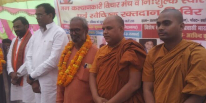 तमकुहीराज, कुशीनगर। तहसील तमकुही राज क्षेत्र के अंतर्गत लतवा मुरलीधर में रविवार को निशुल्क स्वास्थ्य शिविर का आयोजन किया गया जिसमें सैकड़ो लोगों ने अपनी स्वास्थ्य की जानकारी ली। वही रोगियों का उपचार व निशुल्क दवाओं का भी वितरण किया गया। इस मौके पर मुख्य अतिथि के रूप में विधायक फाजिलनगर सुरेन्दर कुमार कुशवाहा, विशिष्ट अतिथि फुलबदन कुशवाहा (पिछड़ा वर्ग राज्य आयोग उ.प्र. सरकार), डॉ. नन्दरतन महाथेरो भन्ते, शील रतन भन्ते, विनय भन्ते, संघ दिप, समाजसेवी अवधनाथ ठकुराई , एडिशनल सीएमओ. देवरिया डॉ. अजय शाही, डॉ.पवन खरवार अरहंत हॉस्पिटल कसया पुरी टीम के साथ 100 मरीज को देखा गया और दवा का वितरण किया गया। राज आई हास्पिटल तमकुहीराज डॉ. मुन्ना अंसारी व दीपक यादव , विकाश मौर्या की टीम ने 105 मरीज को देखा जिसमें 10 मरीज ऑपरेशन वाले मिले व दवा भी वितरण किया गया। रक्तदान देने वाले वेद व्यास सिंह, राजेश कुशवाहा, रविन्दर कुशवाहा, प्रदीप पटेल, विनय कुमार, महेश कुशवाहा, दिनेश कुशवाहा, अमरनाथ कुशवाहा, आयोजन कर्ता बलराम दास उर्फ कुण्डल बाबा ने घोषणा किये कि आज से मैं बौद्ध धर्म ग्रहण करता हूं।