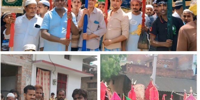 पैगम्बर ए इस्लाम हजरत मुहम्मद( सल0) के नवासे हजरत इमाम हुसैन( रजि0) एवं उनके 72 साथियों की कर्बला के मैदान में हुई शहादत की याद में प्रति वर्ष मनाये जाने वाले मोहर्रम का पर्व चाँद निकलते ही हुसैन के अकीदतमंद शोक में डूब जाते है। कर्बला के मैदान में सातवी मोहर्रम को हजरत कासिम की शहादत की याद में अलम का जुलुस निकाला जाता हैं। गुरुवार को कस्बा सआदतगंज,अनुपगंज,रामपुर कटरा, सैदनपुर, चौखंडी ,मसौली, बांसा, बड़ागाँव, जकरिया, दादरा, बेहटा, रसौली, शहाबपुर, सुरसंन्डा सदरुद्दीनपुर,भयारा, त्रिलोकपुर सहित ग्रामीण अंचलों में हजरत इमाम हुसैन( रजि0) के बेटे हजरत कासिम की शहादत की याद में अलम का जुलुस मोहरमी ढोल एवं तासे के साथ निर्धारित मार्गो से अकीदत के साथ निकाला गया। जुलुस में हजरत इमाम हुसैन के अकीदतमंदों ने पुलाव,सबील सहित अन्य खाद्य सामग्री का वितरण किया गया।